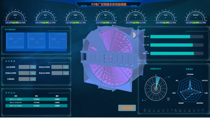 基于智能分析云平臺(tái)搭建的空預(yù)器分析診斷智能系統(tǒng),由多種子系統(tǒng)集成,對(duì)空預(yù)器多角度、全方位進(jìn)行性能分析評(píng)判。極大提高了電廠的工作效率。